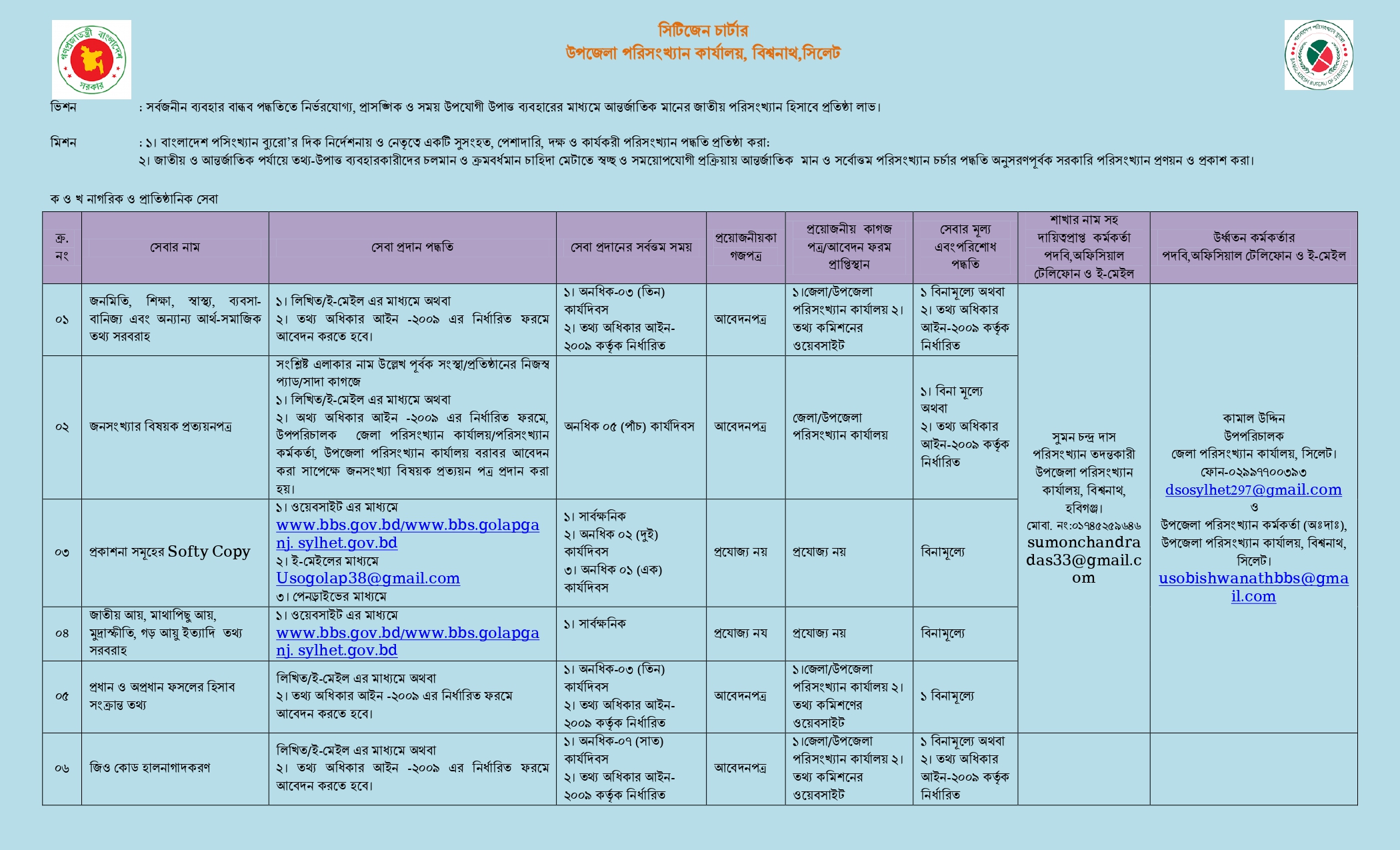 সেবার তালিকা
